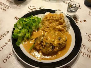 This time I was serving my filled Tomatos with it, Rice (you can add Paprika and Tomatopaste to the Rice) and Lettuce.